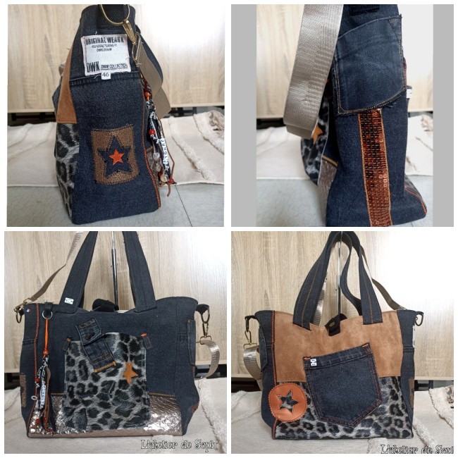intérieur coton, 1 poche en jean, 1 cordon attache clés,